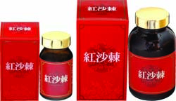 特徴 沙棘(サージ)とは主に中国の華北、四川省等に分布するグミ科の植物。貧弱な土壌や厳しい環境の中でも生長できる強い植物です。この沙棘の果実から抽出されたオイルは中国西域で古くから民間の健康食品として親しまれてきました。この沙棘の果実にはビタミンEやカロテン、不飽和脂肪酸等も含まれています。この沙棘の果実から抽出した純粋な沙棘オイル100%の健康食品が「紅沙棘」(ホンサージ)です。飲みやすいソフトカプセルに入っています。